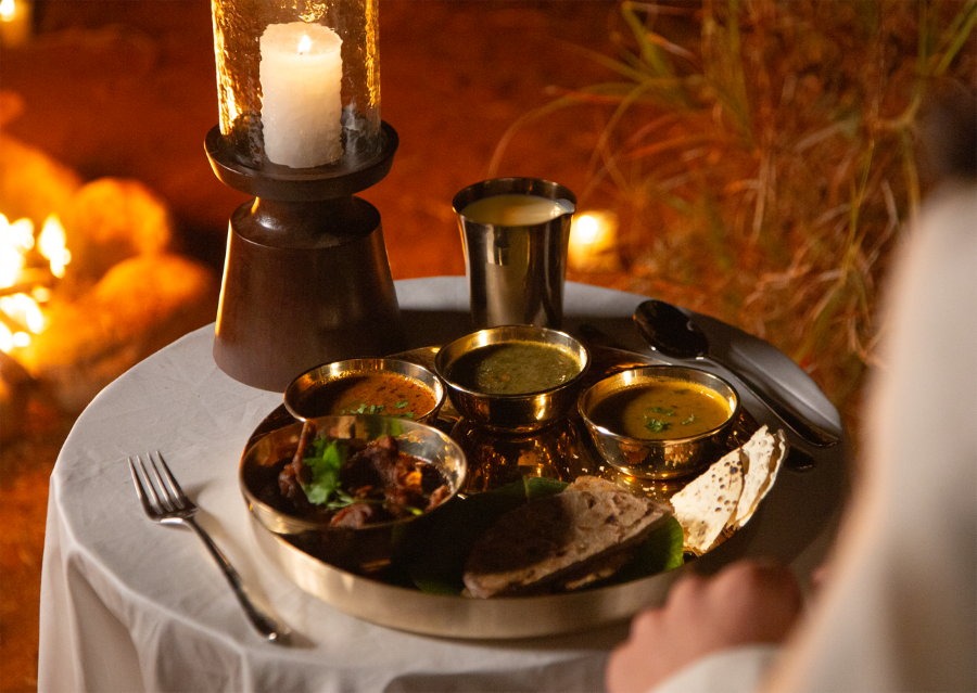 A standout experience is the live angithi-style cooking, where traditional Rajasthani cuisine is prepared over coal fires right in front of you, often within the jungle setting itself. Ingredients are fresh, flavours are rooted in tradition, and the experience feels authentic rather than staged.